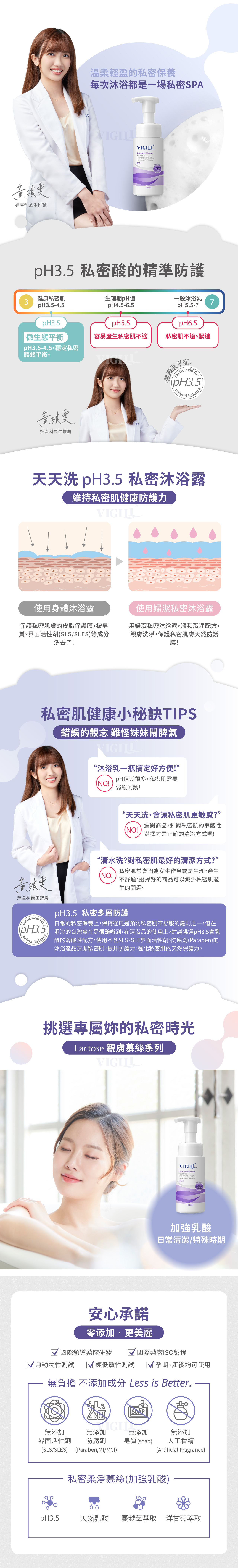 ★ pH3.5私密酸性配方:乳酸調節私密部位酸鹼平衡,專為嬌嫩肌膚設計,守護私密健康