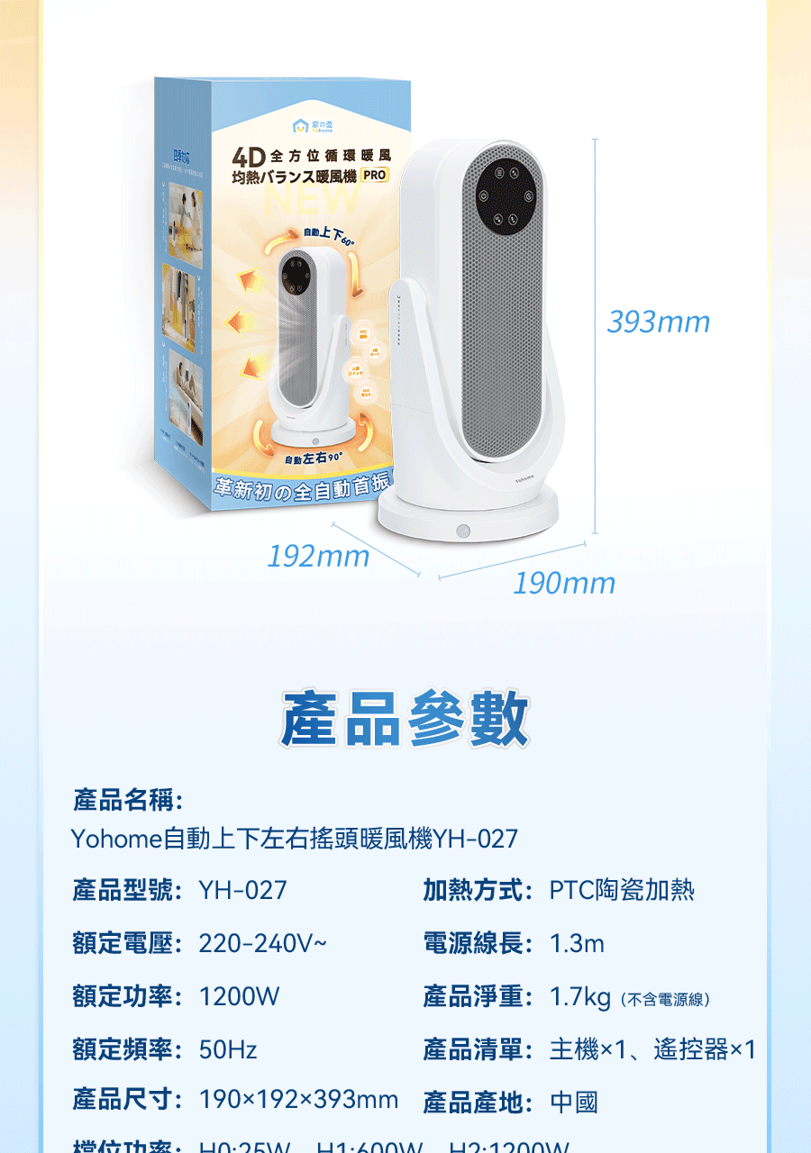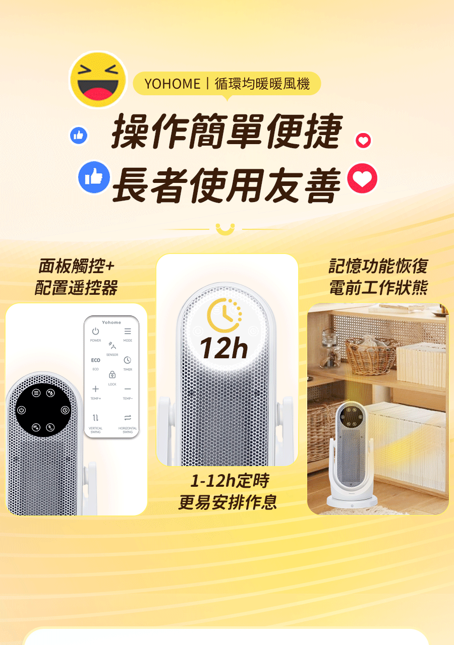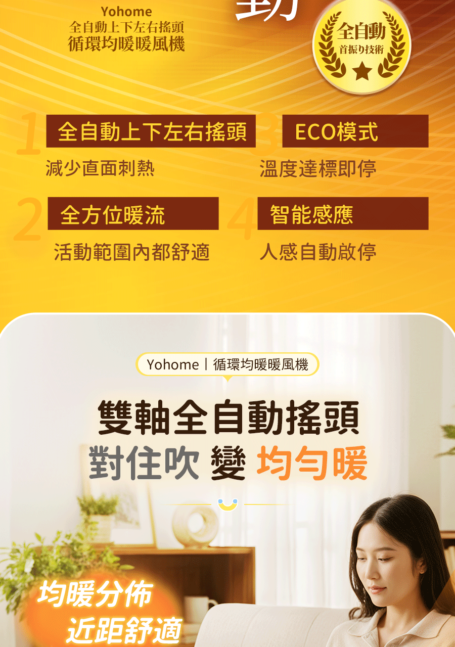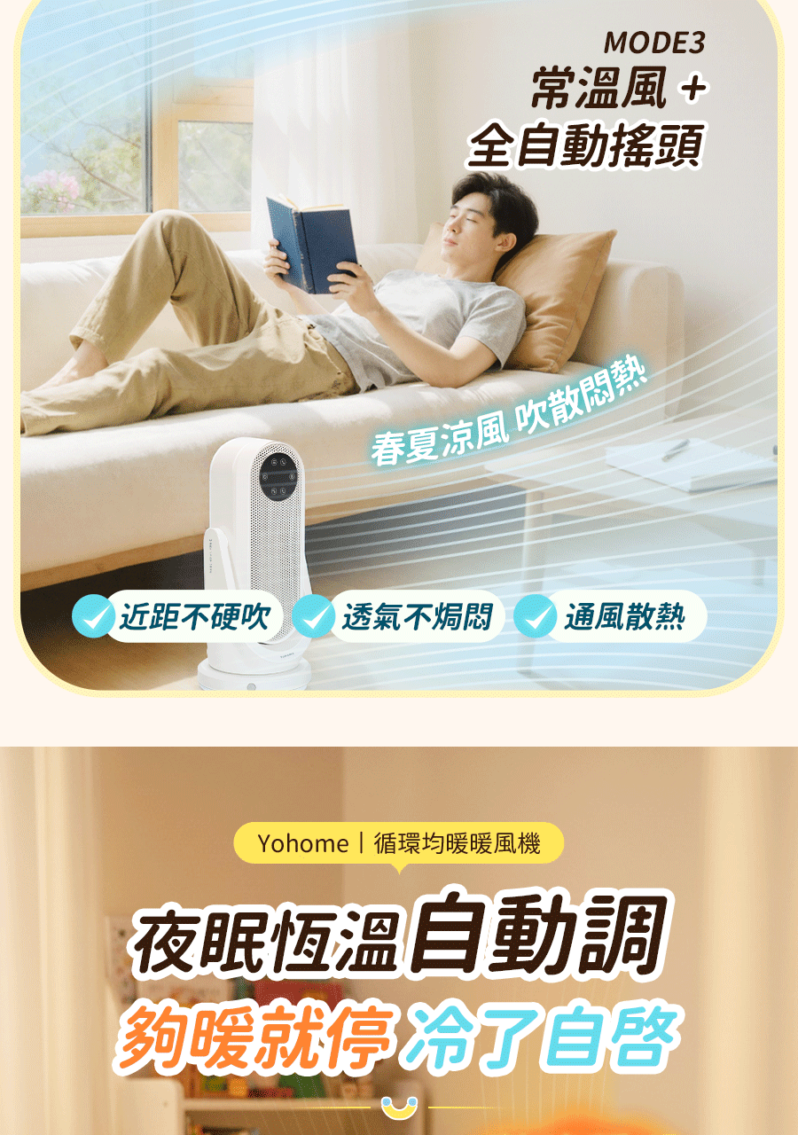 1部Yohome PRO2.0 = 全方位循環暖風 + 均溫不直吹 + 智能啟停省電 + 四季通用多模式,超多functions!
